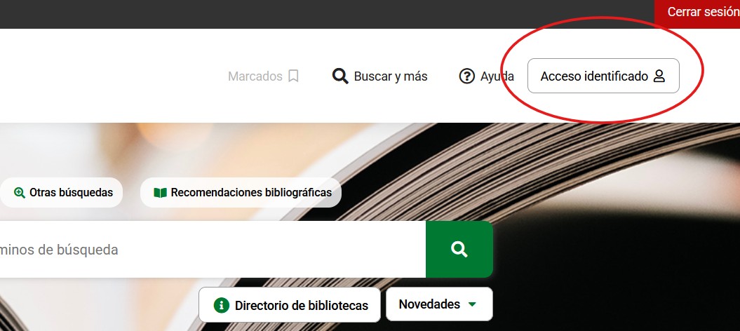 En la parte superior derecha, buscaremos el botón «Acceso identificado» e introduciremos nuestros datos (dni y contraseña, los mismos que usamos para eBiblio).