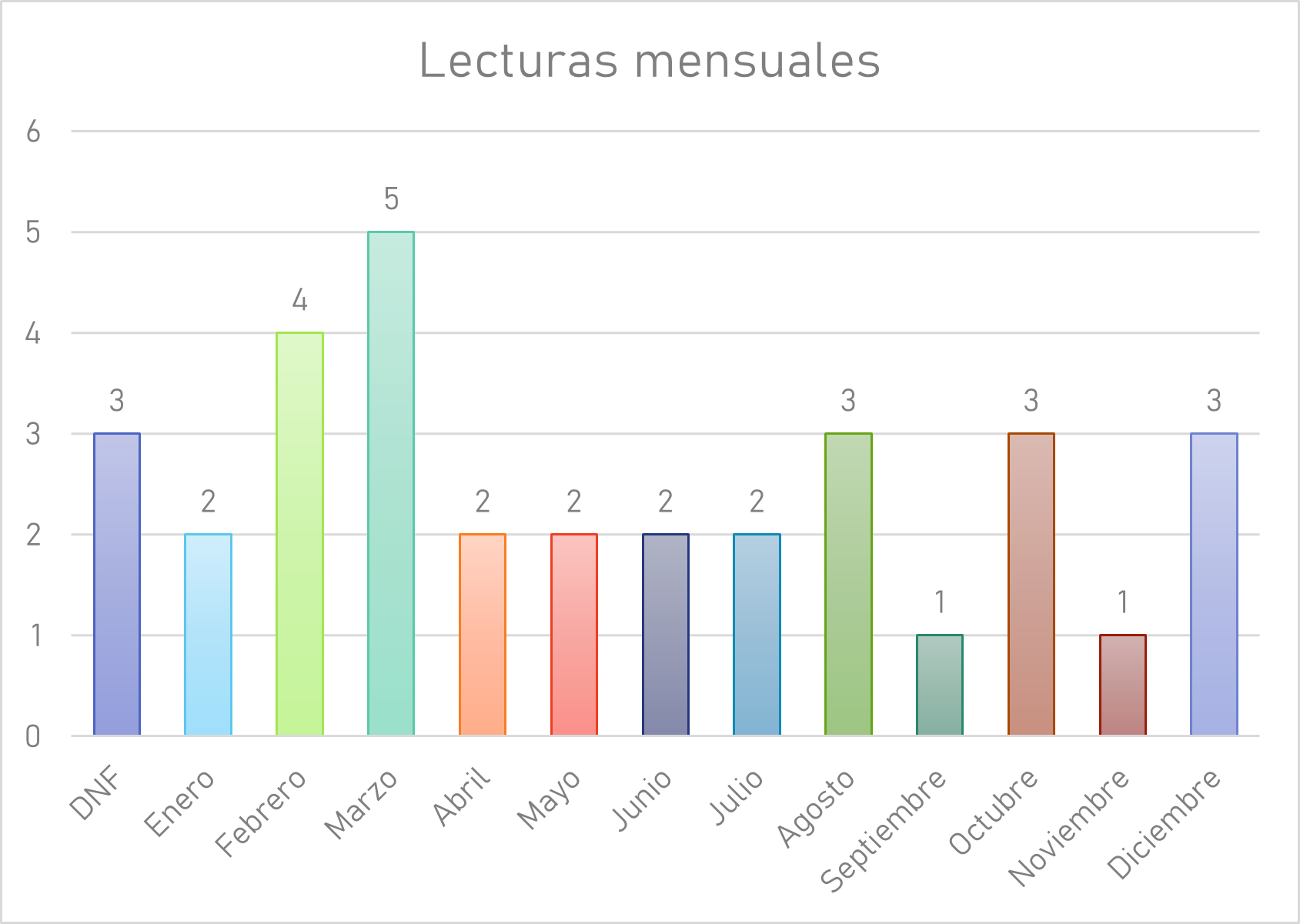 ¿Y ese gráfico del mood lector? Una fantasía. Empecé enero leyendo cosas muy optimistas y luminosas y luego… se publicó The Golden Raven y solo quería leer cosas que me destrozaran 😂.