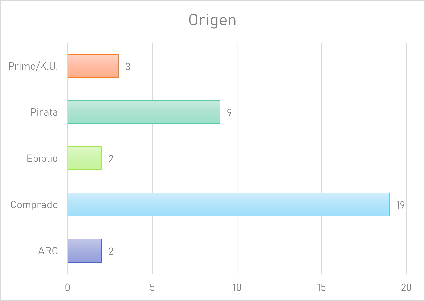 La verdad es que, con el registro en excel que me hice lleno de gráficos y demás, me moría por que acabara el año y poder ver reflejado en imágenes cómo ha sido mi año lector. Y creo que tengo algunas conclusiones interesantes.