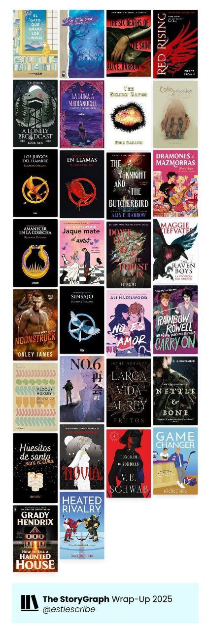 Comenzamos con un resumen de este año generado por The StoryGraph y un collage de todos los libros terminados durante 2025 (no aparecen ni los que abandoné ni los que puse en pausa):